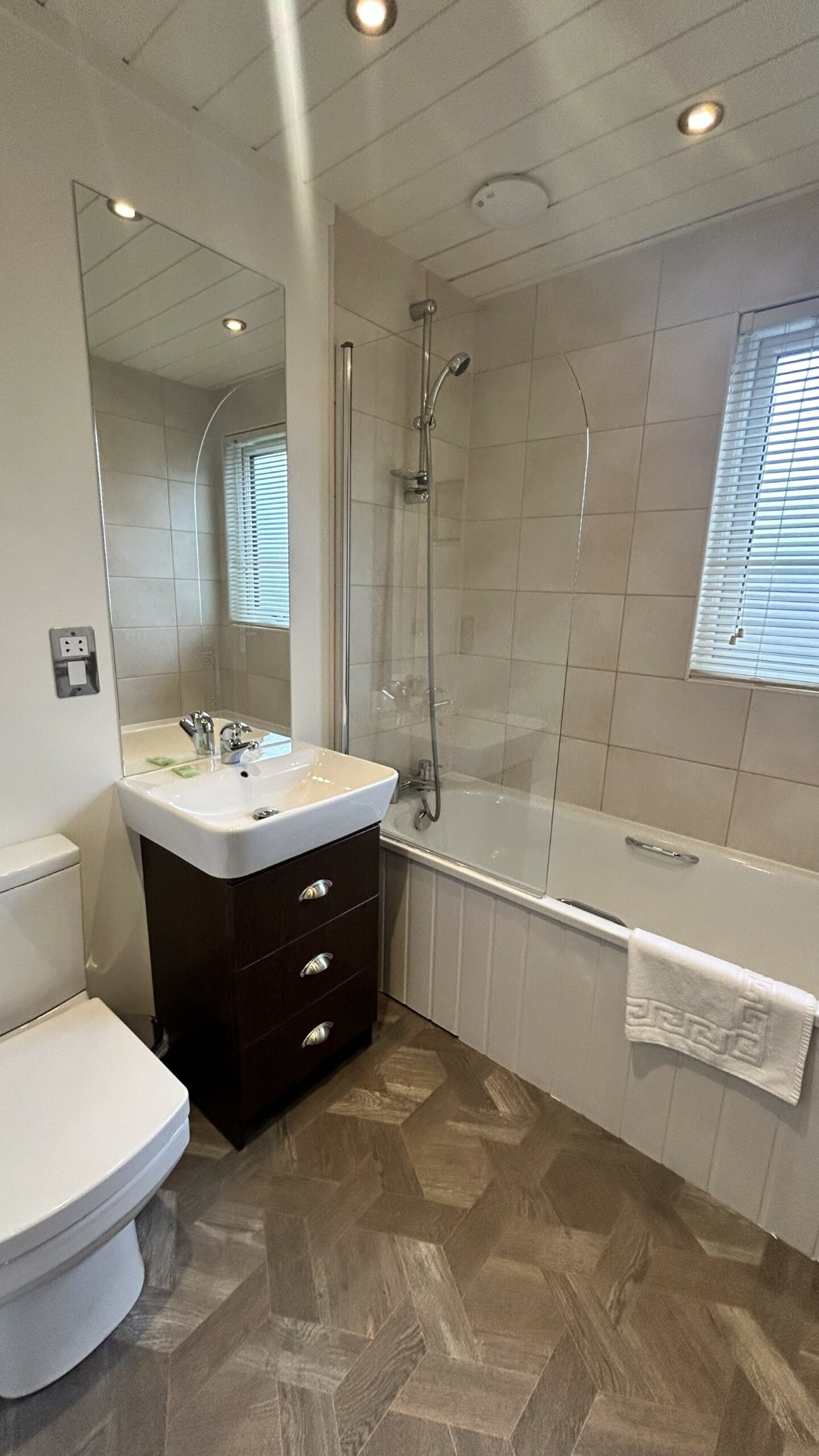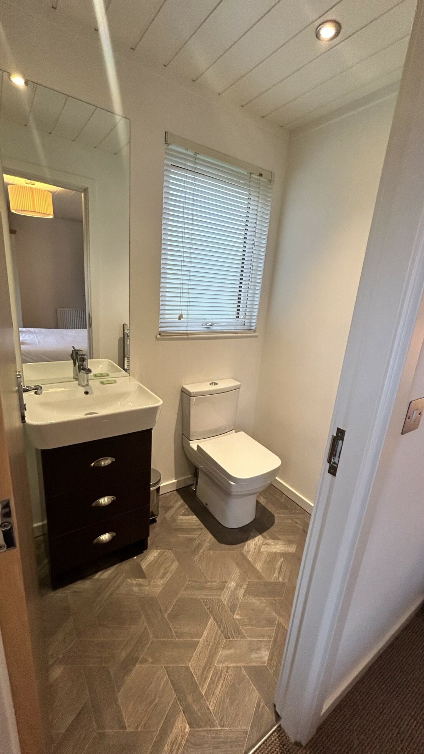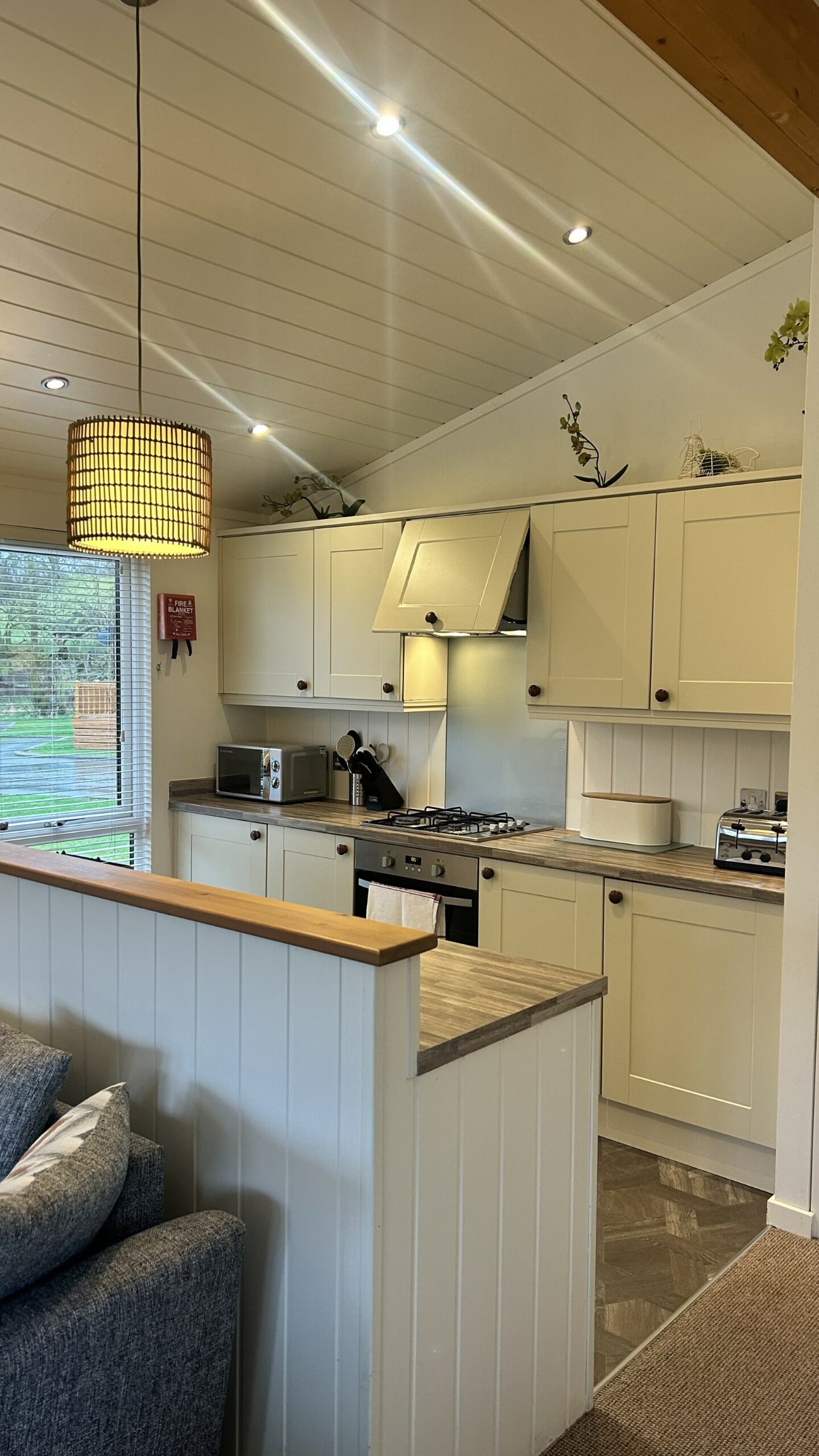 The bright fully fitted kitchen with shaker doors painted in contrasting shades makes the Plantation a spacious living area, ideal for entertaining. An open-plan lounge features double-opening French doors to the front aspect leading onto a fully decked area with hot tub. Large windows give natural light to an already fresh colour palette in the dining area with an extending table and six upholstered chairs.