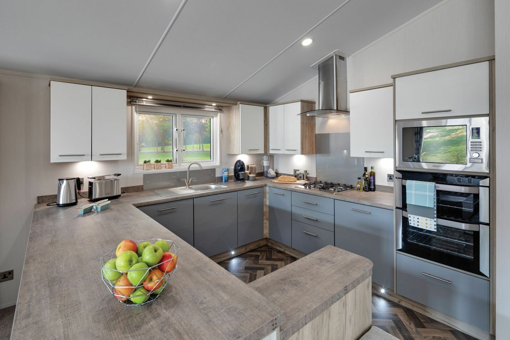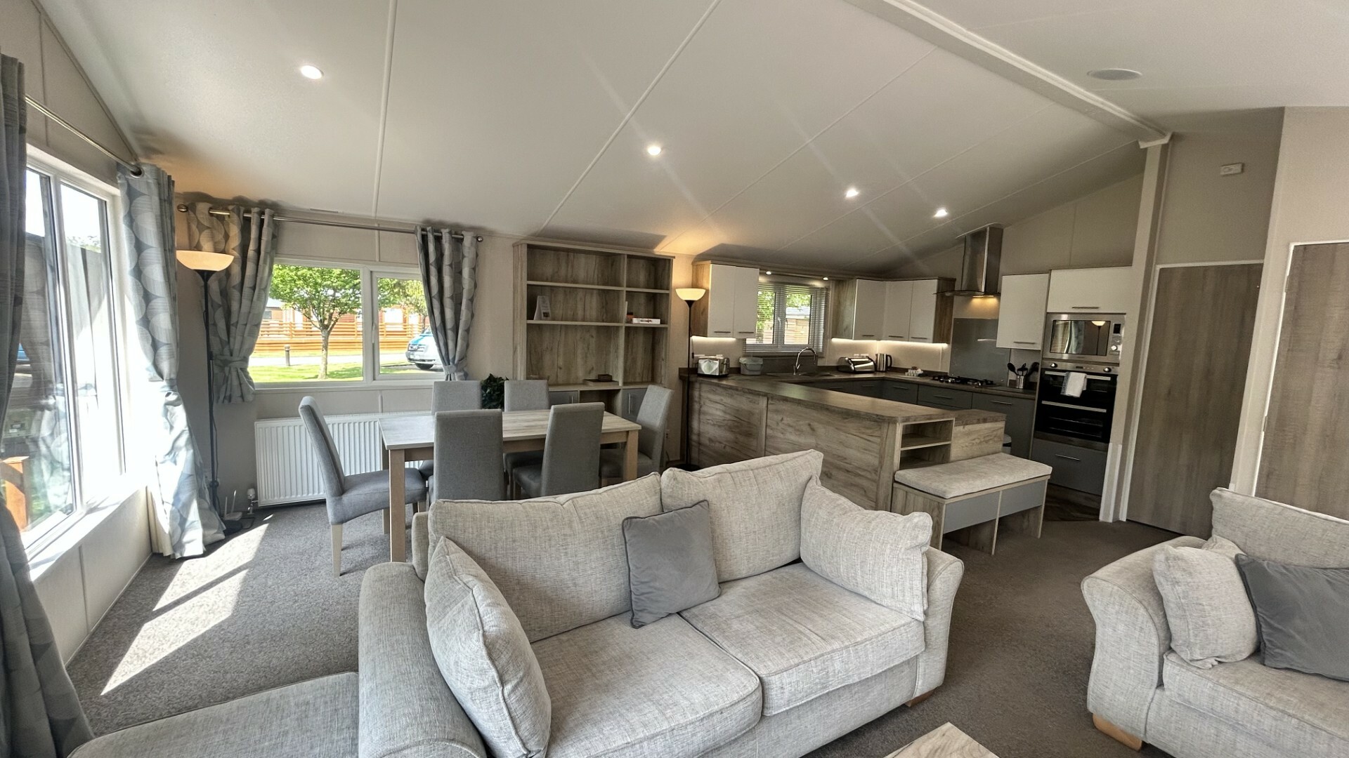 If you are looking for a holiday home that delivers classic lodge living, look no further than the Clearwater. The open-plan layout and light, airy living space of the Clearwater is perfect for relaxing and unwinding. Its abundance of windows throughout helps to flood the living space with natural light, with a spacious layout.